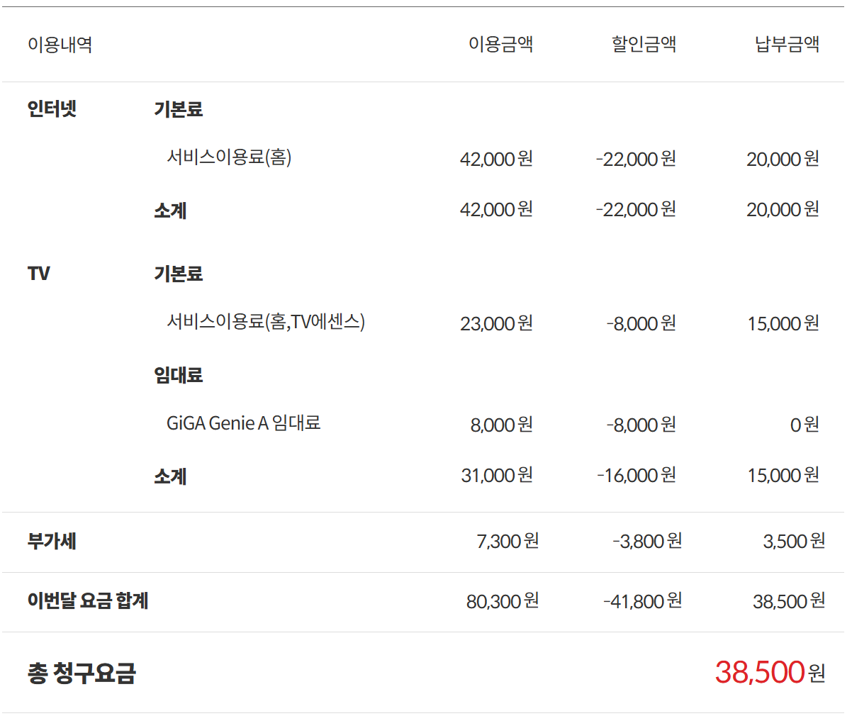 1기가 + 상위 티비 = 요금이 엄청 저렴하구용!!