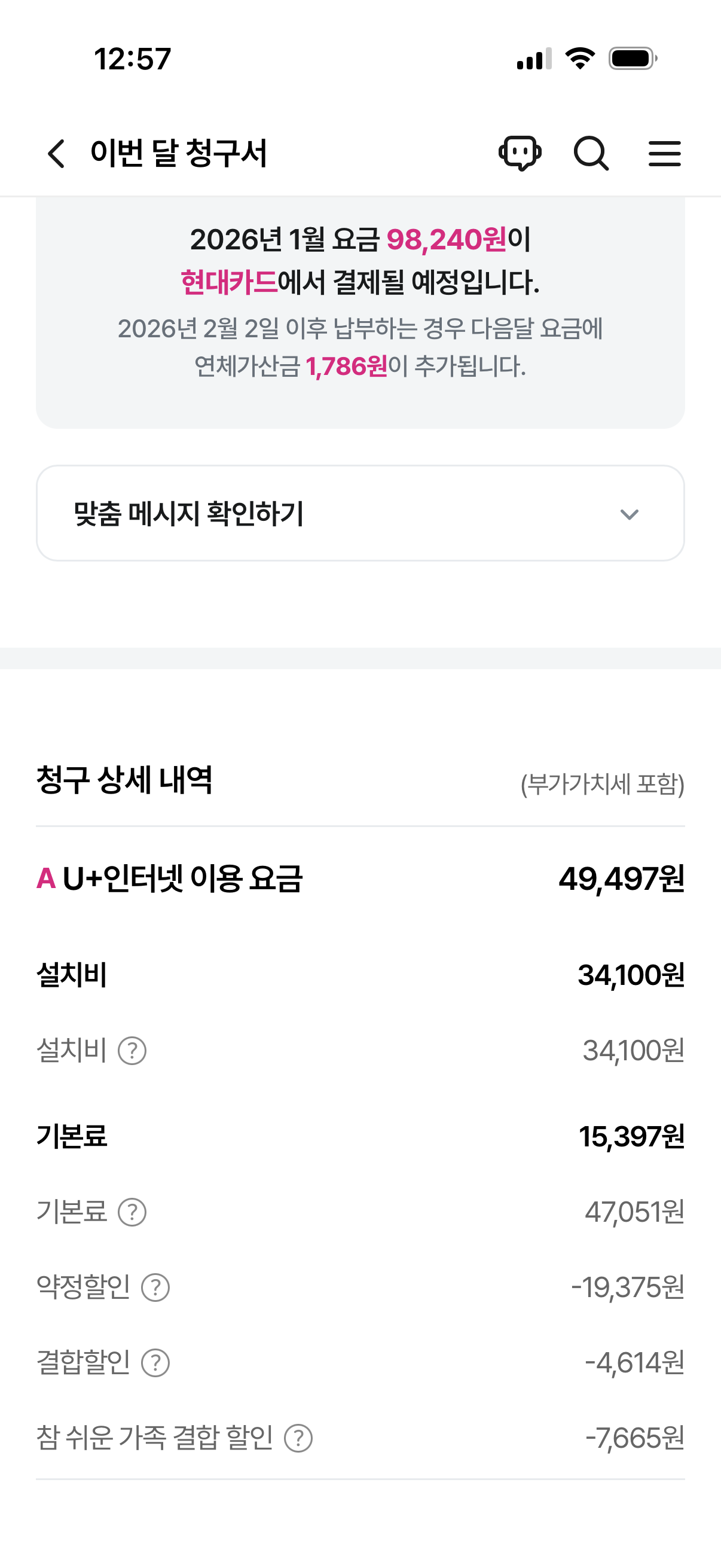 그로부터 한달이 지나서 오늘 처음 청구서를 받았는데, TV 요금이 프로모션으로 한달 넣어줬다던 환승구독 요금제 금액이 그대로 청구된 것으로 보입니다.