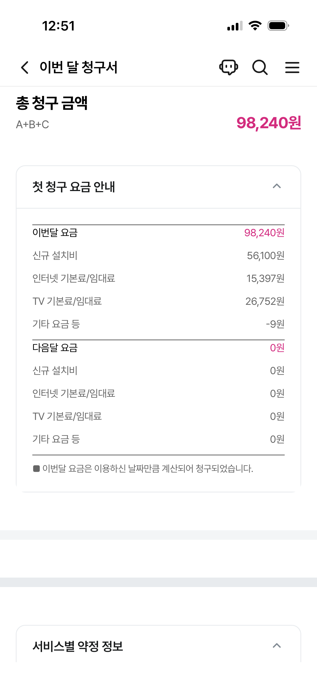 LG 인터넷 + TV 가입한지 1달이 지나고 청구 요금 관련 문의입니다.