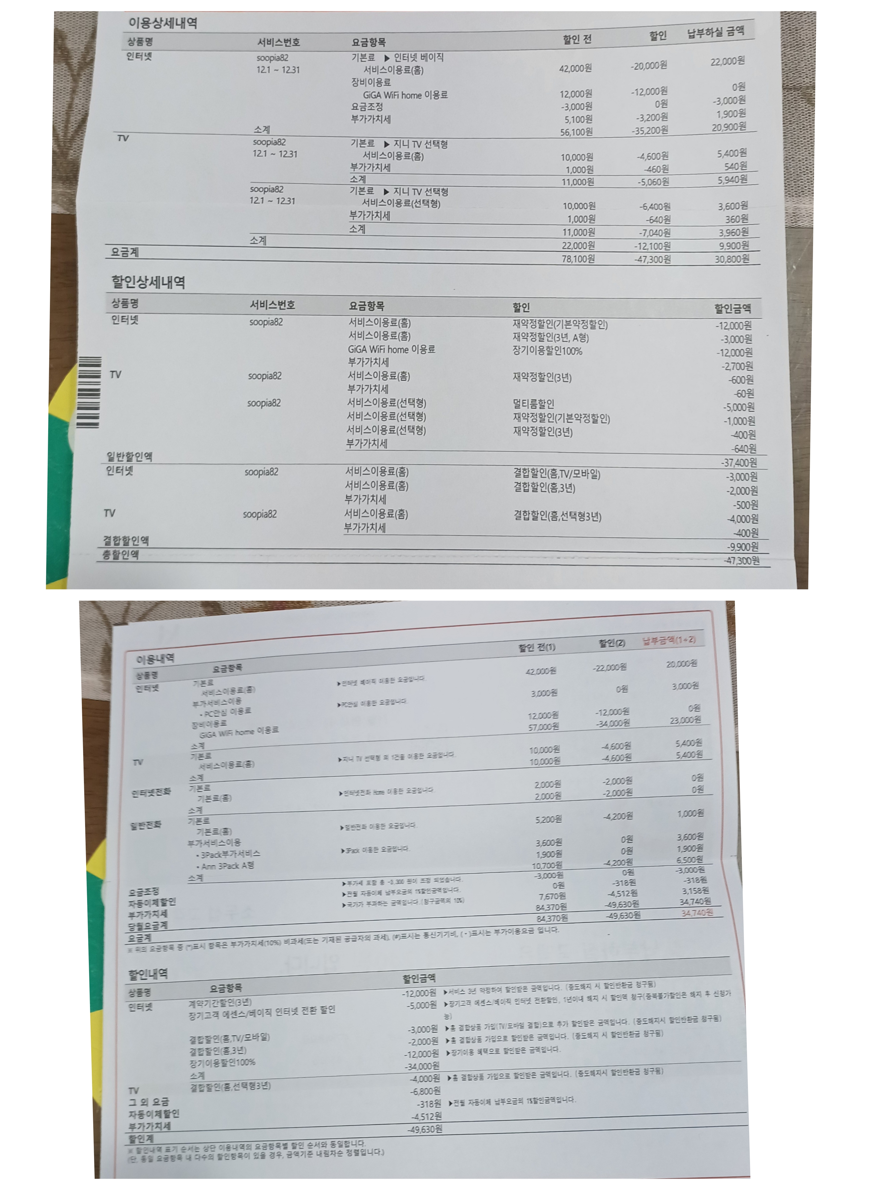 고지서상에서는 확인이 안되던데.. 고객센터에 연락을 해봐야하겠지요?