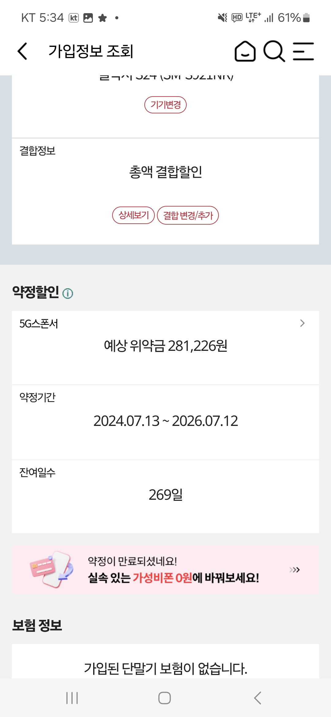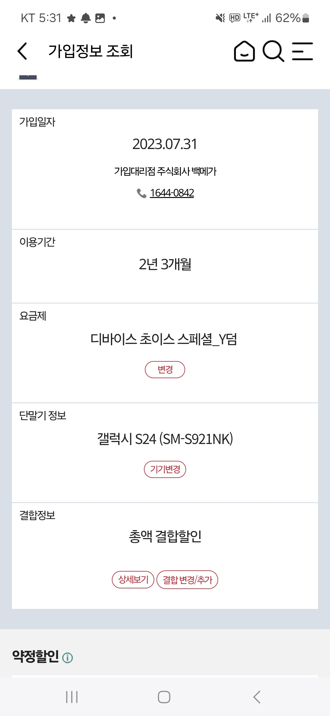마이케이티 앱을 통해 결합상품을 변경해보시면 좋겠습니다.