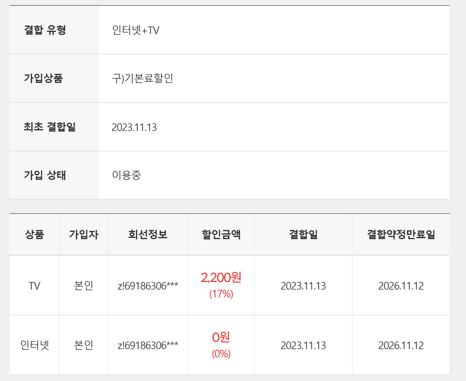2년간 <패밀리> 결합 할인을 적용받으시다가