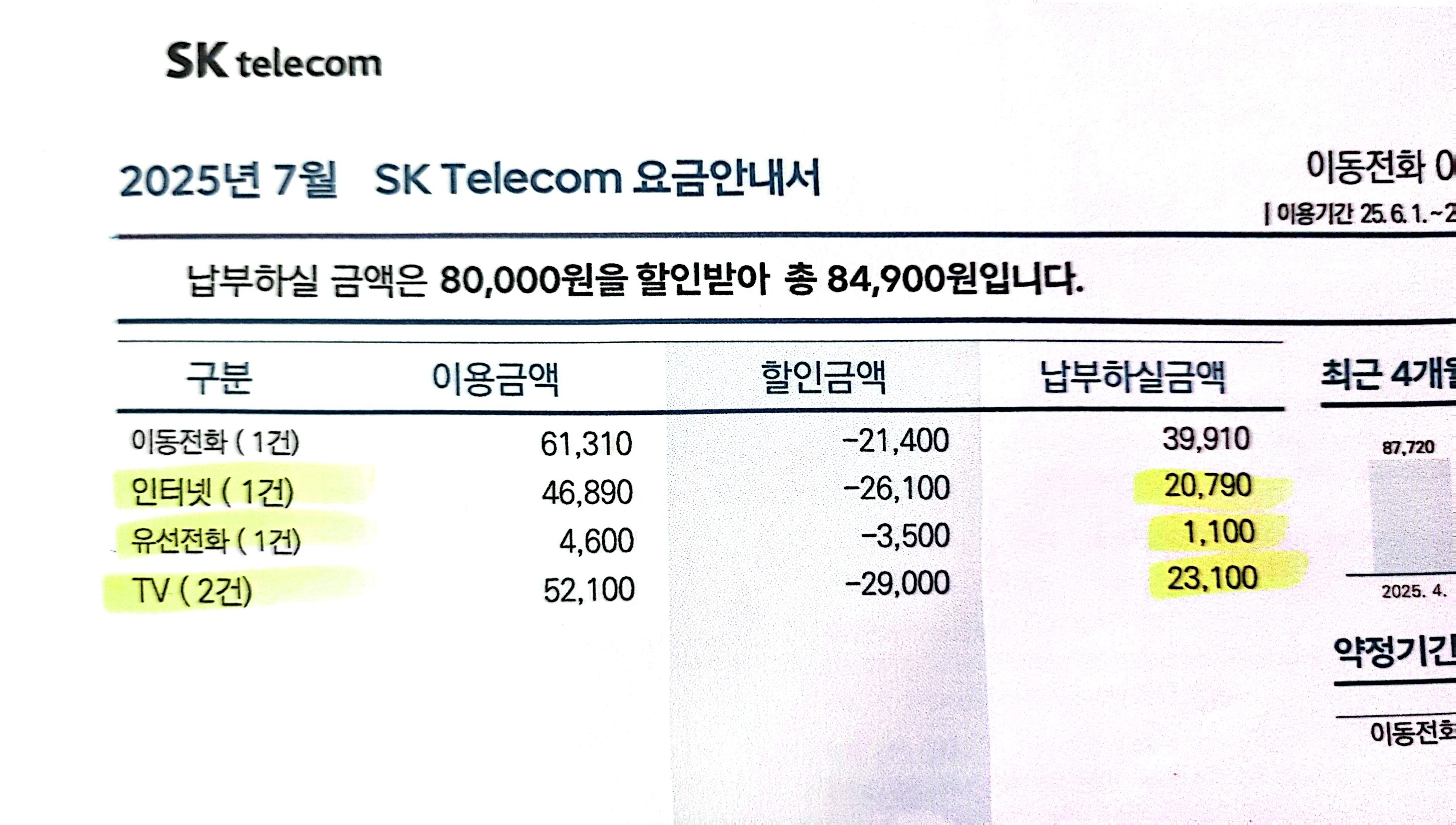 오래 쓰셨다면 월요금이 저렴할 수도 있어요~~!!
