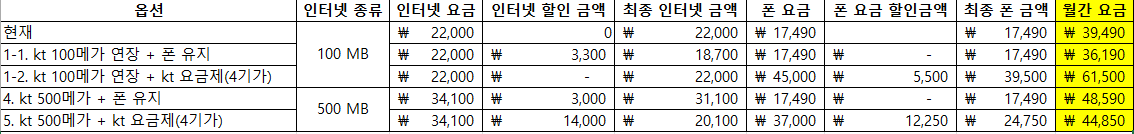 1. kt 재약정 500메가 + 엠모바일 결합으로 할인&사혜택이 얼마나 되는지