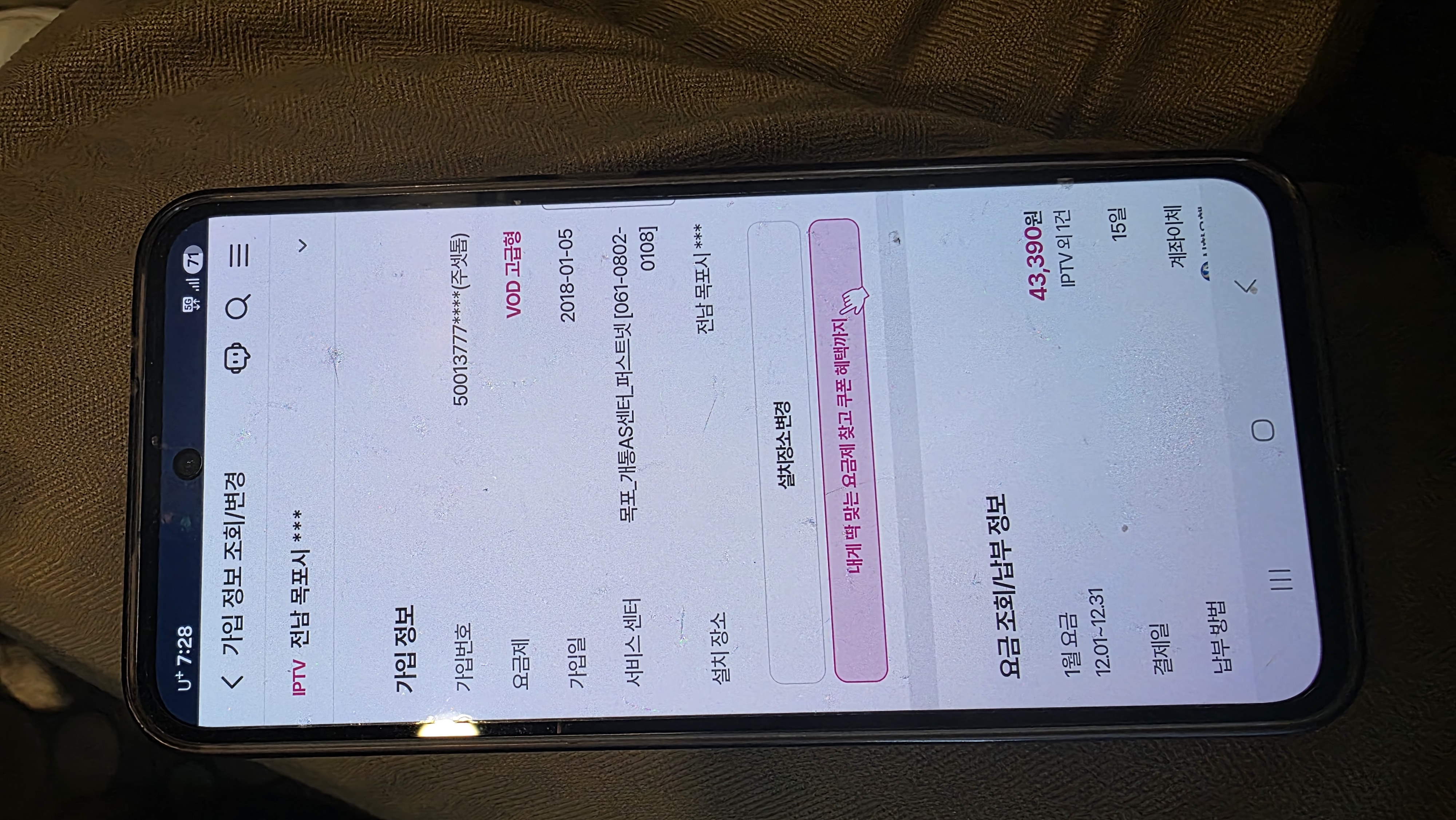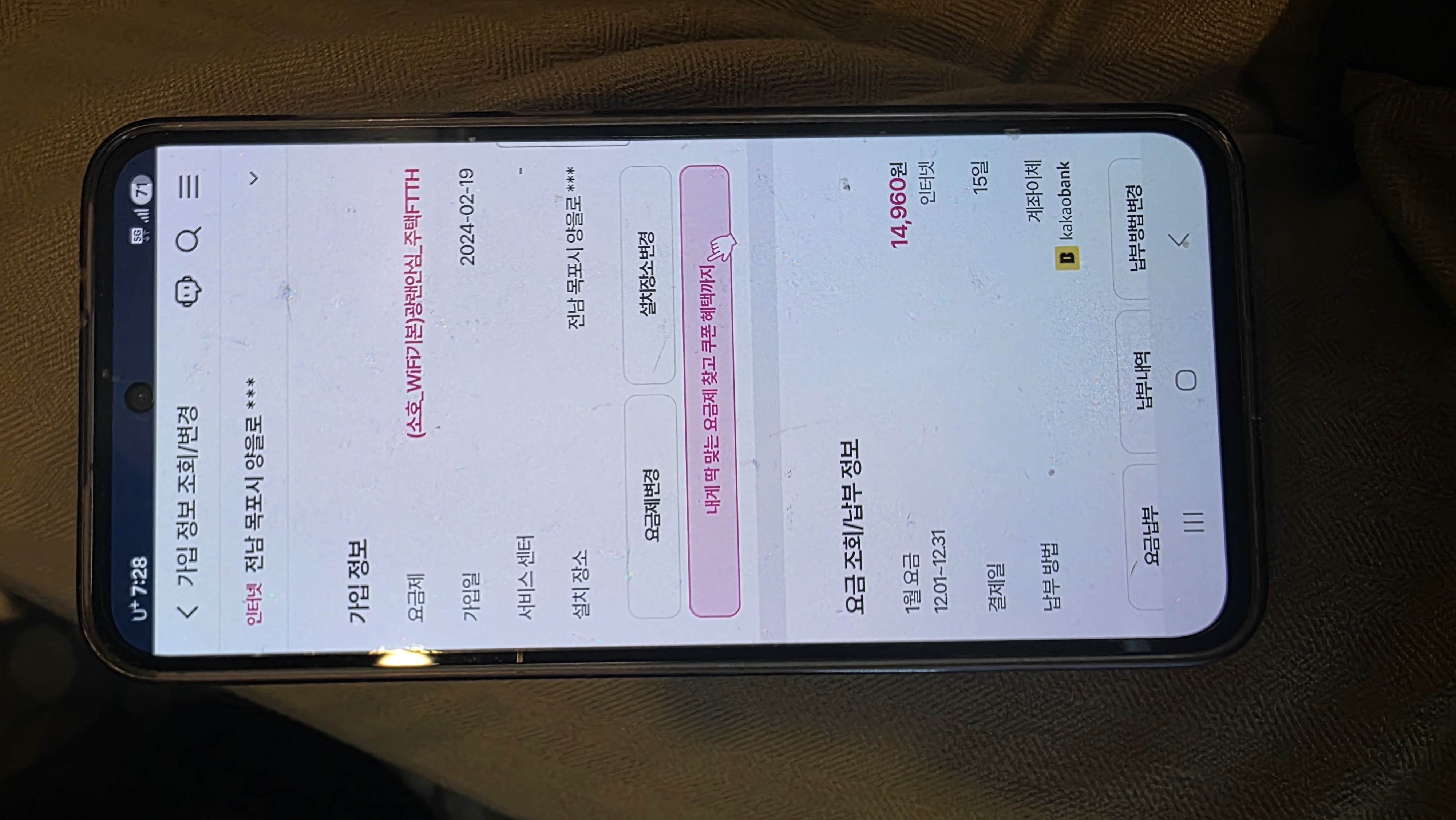 지금은 약정이 걸려있는 LG 티비, 인터넷, 휴대폰이 결합할인이 적용되어있지만,