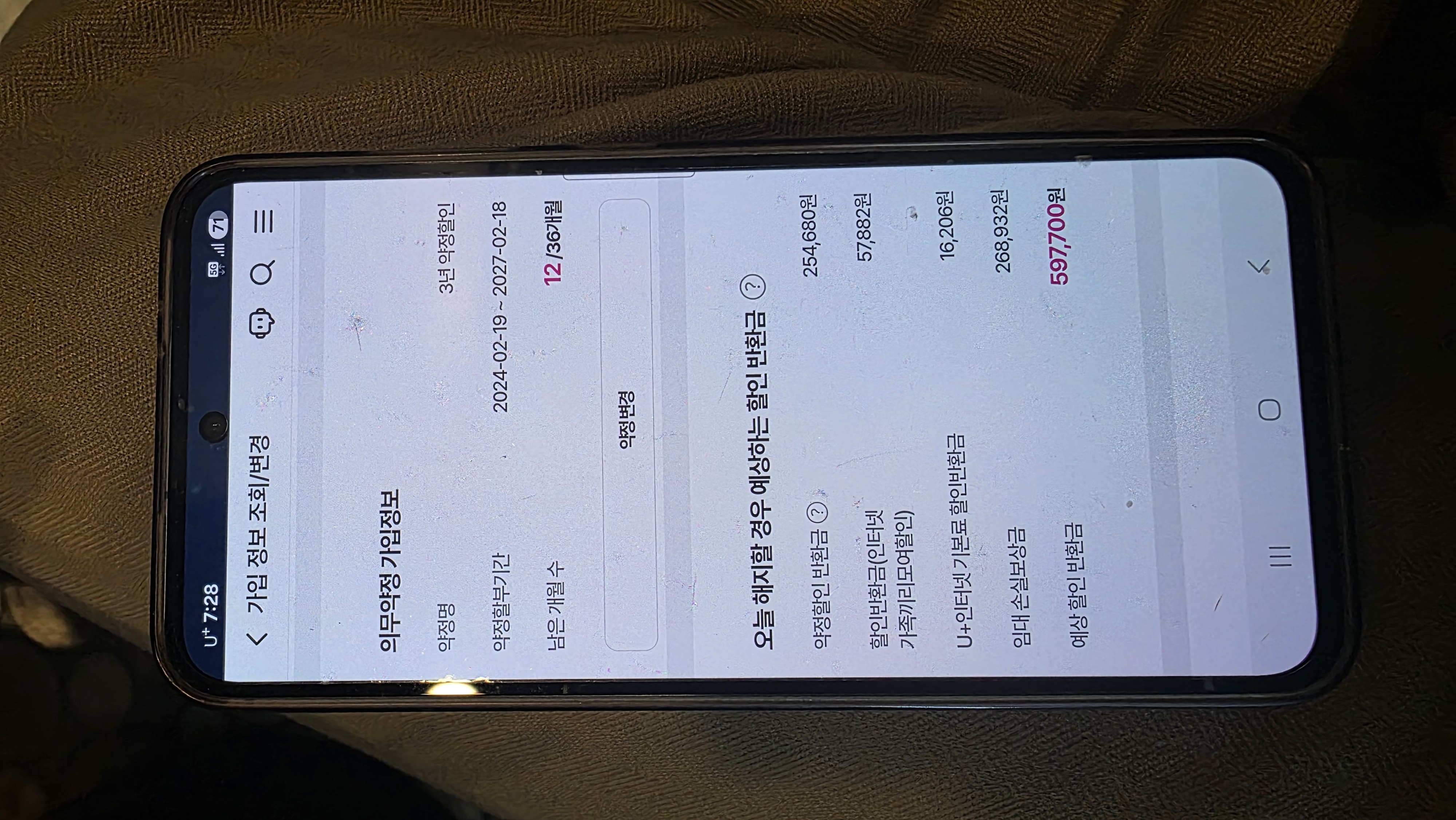 2) 양을로: 약정기간 12개월 남음 / 위약금 328,768원