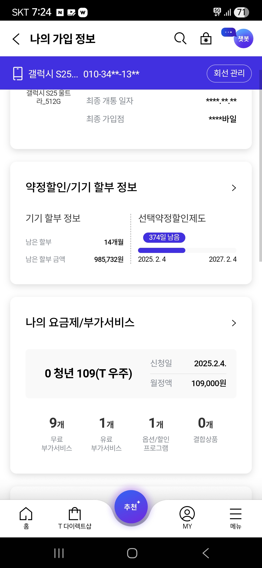 3. 제 휴대폰 통신사는 sk인데 저희가족들껄 sk로 이동할 계획이라 따로 제 약정은 확인 하지 않았던 건데 이미지 첨부 하겠습니다. 요금제는 지금과 비슷한걸로 사용할 예정입니다.