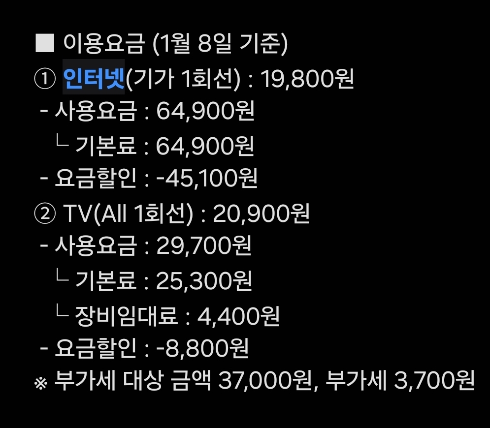 인터넷은 50% 할인을 받고 계실 거예요ㅎㅎ