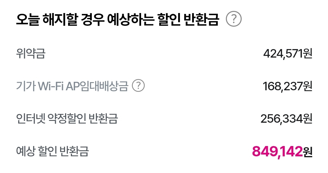 해지위약금이 ₩849,142이라고 나오네요.