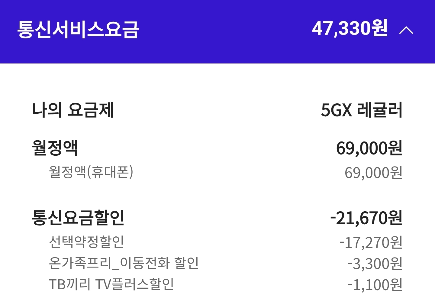 SK 휴대폰 (69요금제) 1회선을 앞으로도 계속 유지하실 예정이시며,