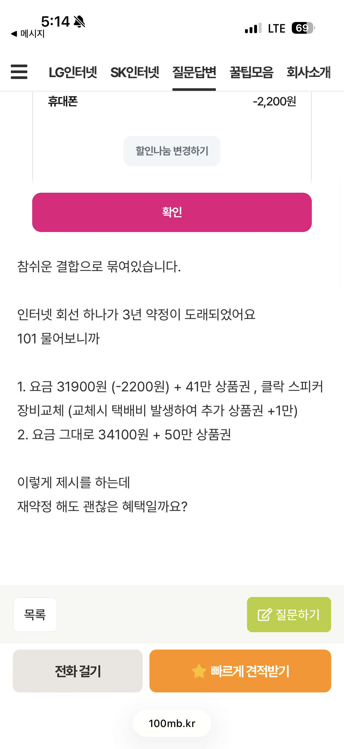 오, 결합 할인을 받고 계신다면 LG 재약정이 낫습니다!