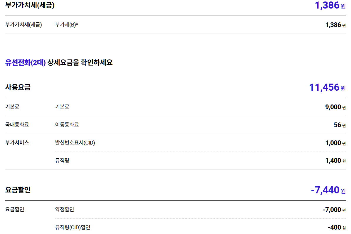 + 일반전화 (유선 3000 요금제 가입 기준)