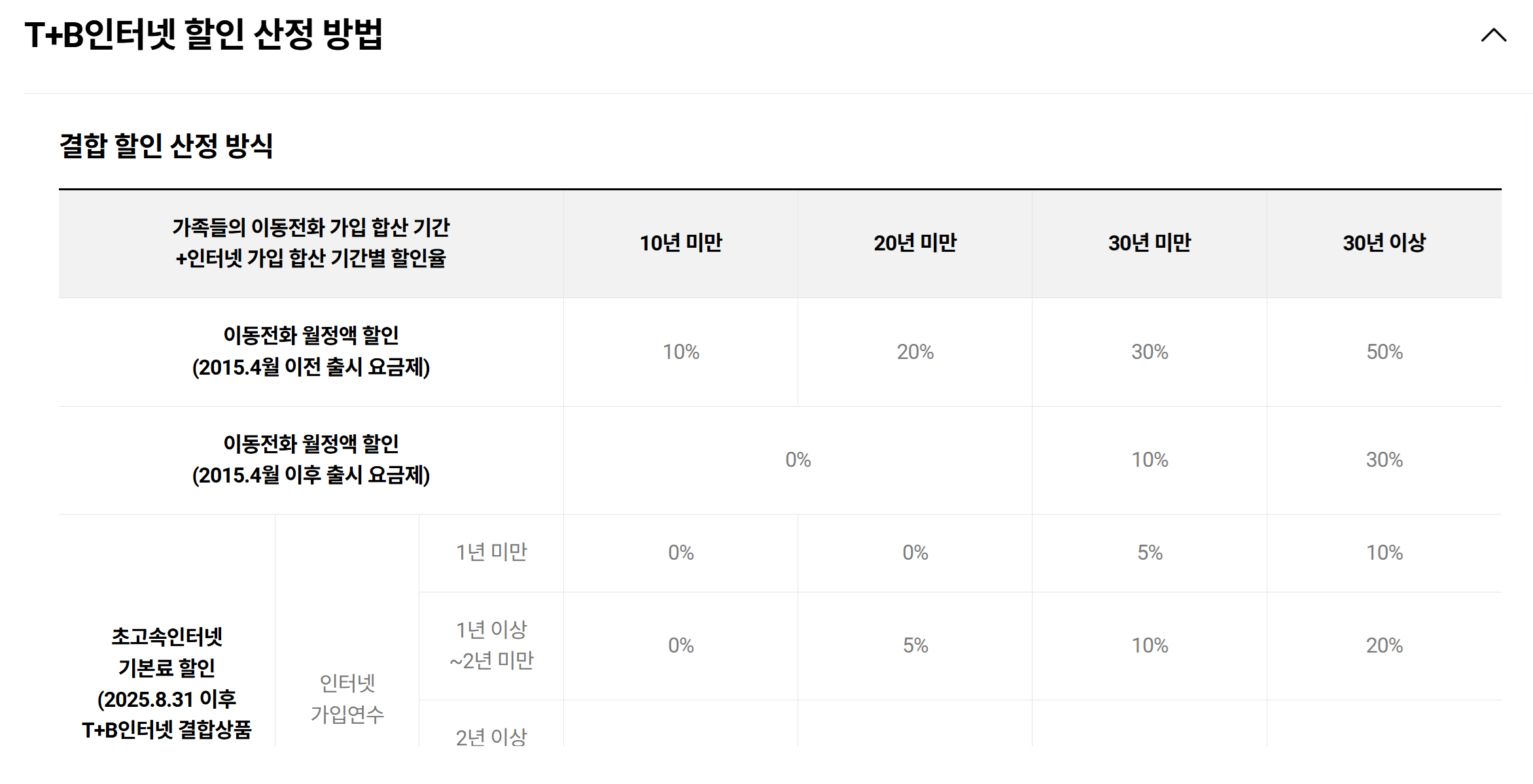 가입연수와 인터넷 사용연수 대비한 할인액입니다