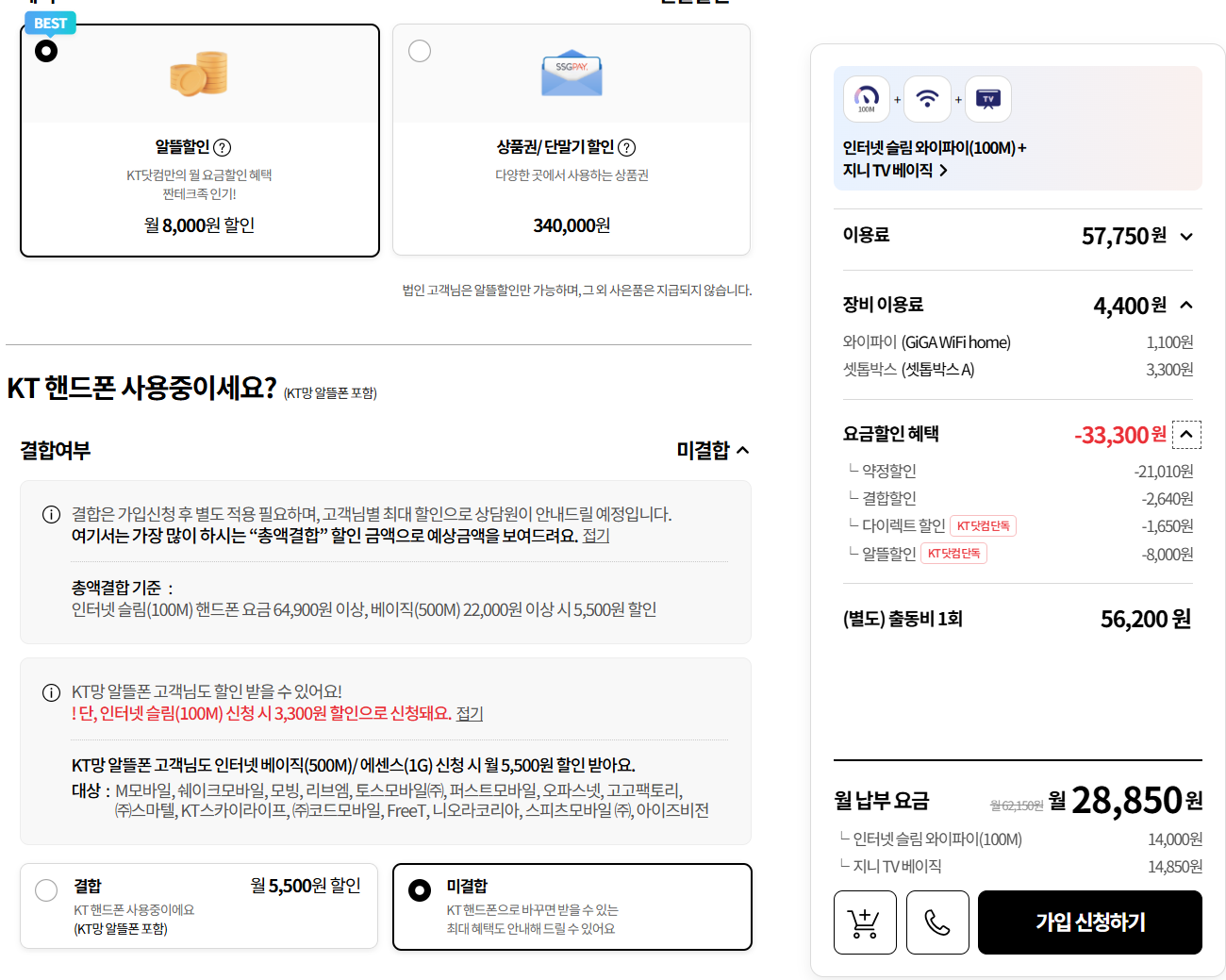 엠모바일에서 KT 인터넷 + TV 트리플 결합 할인 중인데