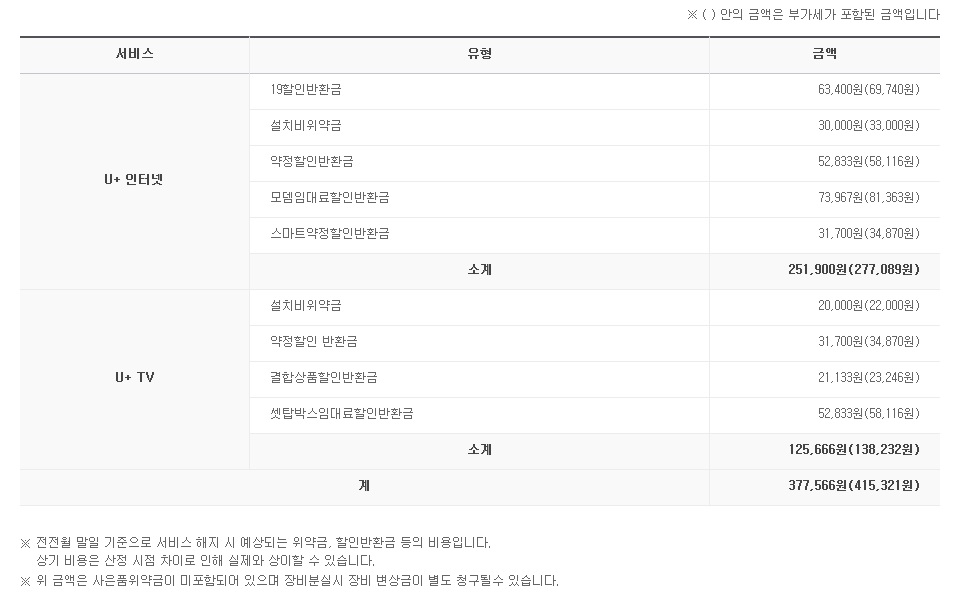 음, 우선 위약금이든 요금이든 설치비든.. 부가세 포함으로 보시는 것이 맞으므로 총 41만원대가 맞네요..
