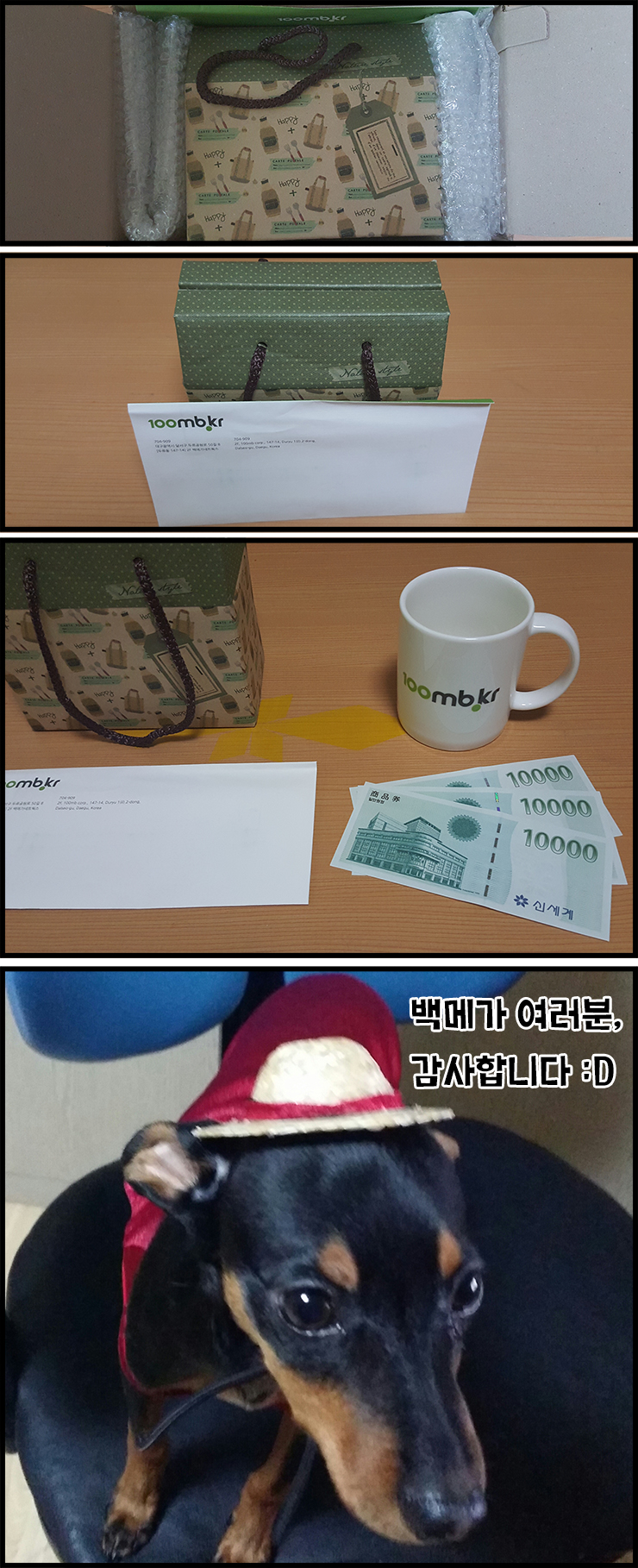 며칠 전에 주문했던 강아지 사료인 줄 알았더니, 백메가에서 보내주신 선물이 뙇 . . . [!]
