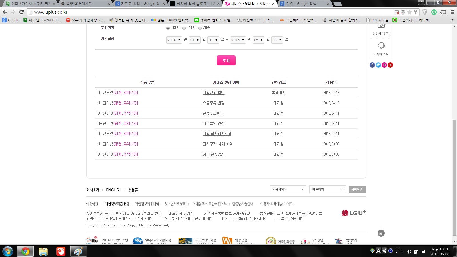 엘지 인터넷 시작일 2014.05.17(3년 약정)