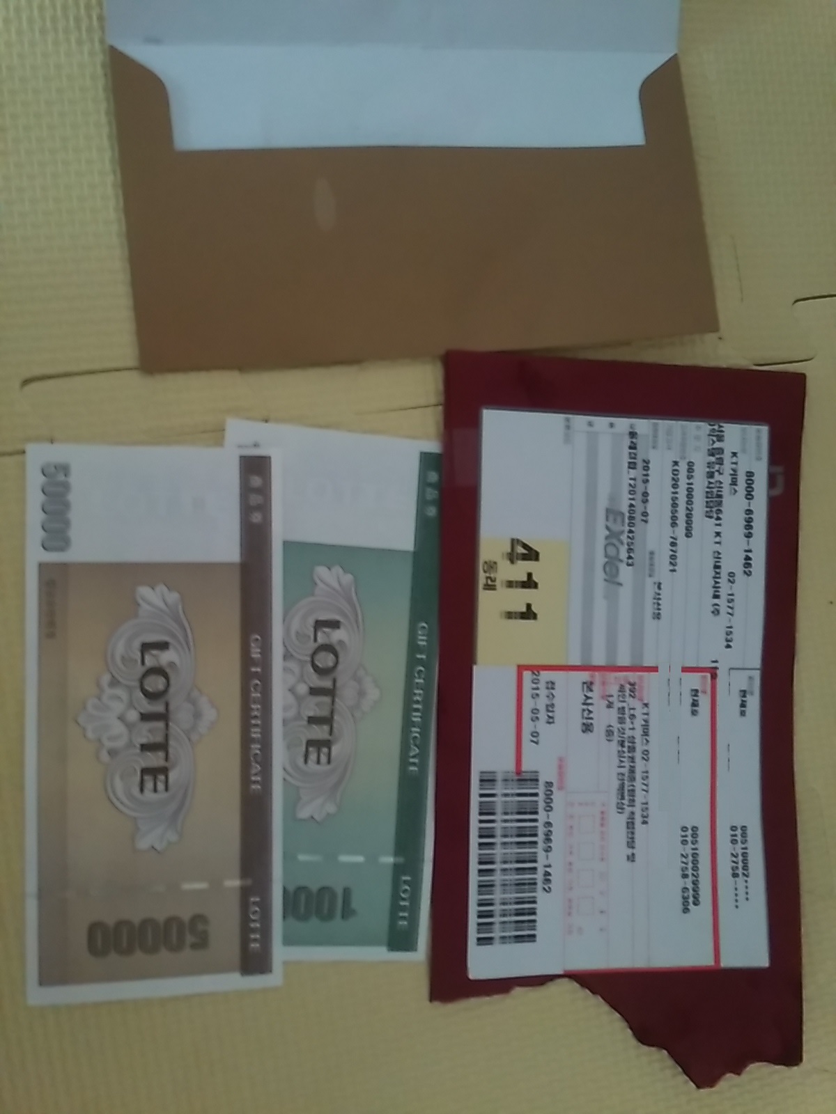 가입이 끝나고 도착한 상품권이 6만원입니다. (5만원 한 장, 1만원 한 장)