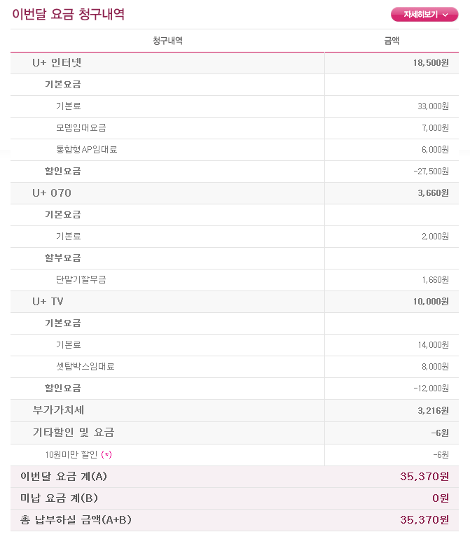 현재 납부하시는 요금은 인터넷과 TV, 인터넷전화까지 총 35,370원이 되는데요~