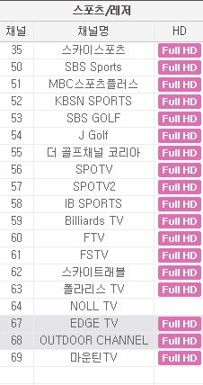 스포츠 채널은 위 사진을 참고하시면 됩니다 ^^