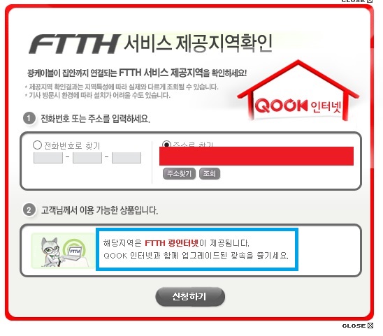 기가인터넷이 설치가 되는 지역인 것이거든요~!