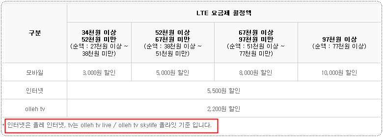 67 정도 요금제 사용시, 휴대폰 8천원, 인터넷/TV 7700원씩 할인이 되는거 같은데요?
