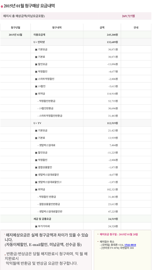 해지 신공을 읽고 해지 시 발생 위약금과 예약 해지를 걸어둔 상태입니다.