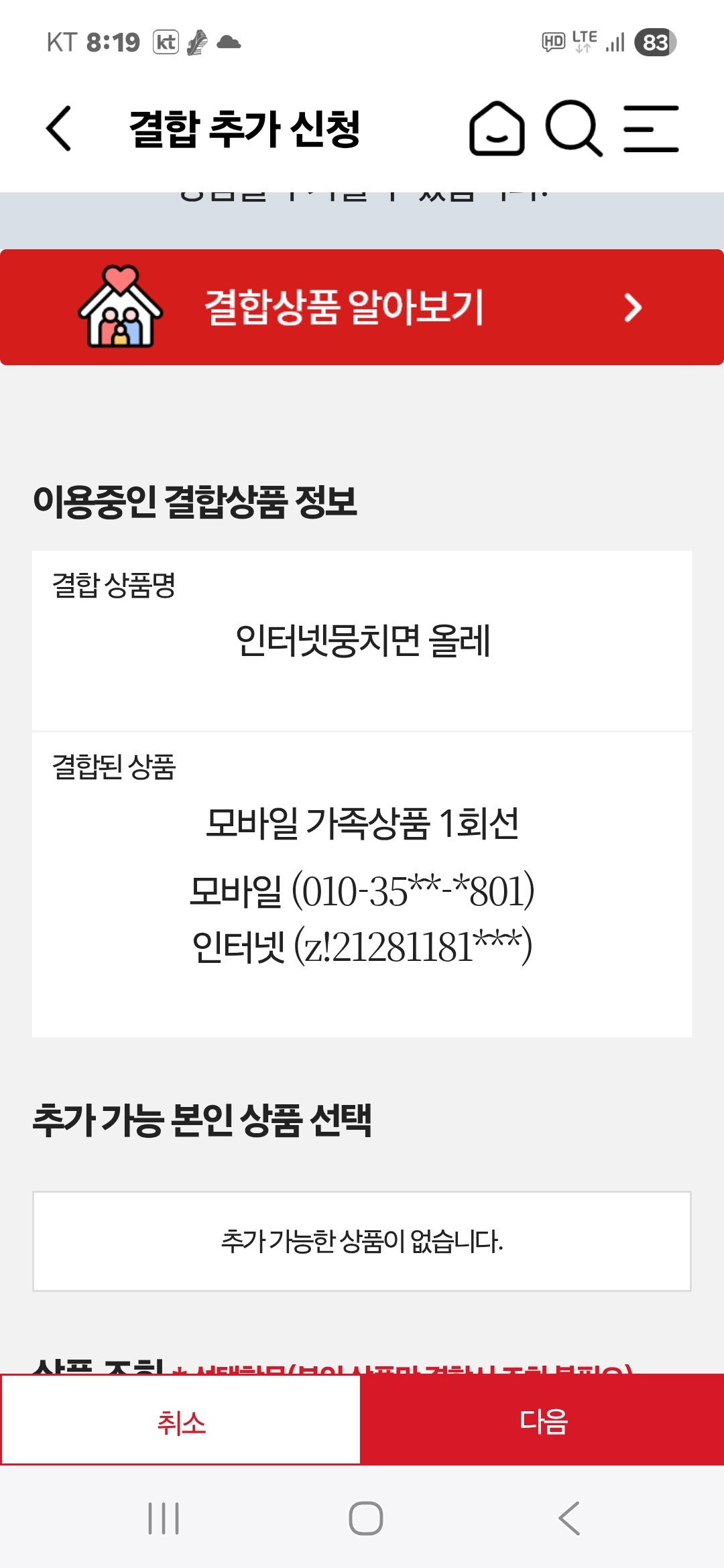 핸드폰 요금제 변경과 가족 결합은 어려울것 같습니다.