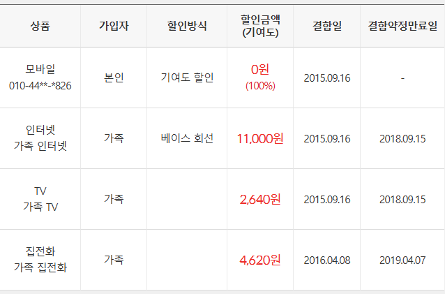 혹시나 세 장소 인터넷에서 '패밀리 결합'이라는 걸로 묶어 할인을 받고 계신 곳이 하나라도 있다면