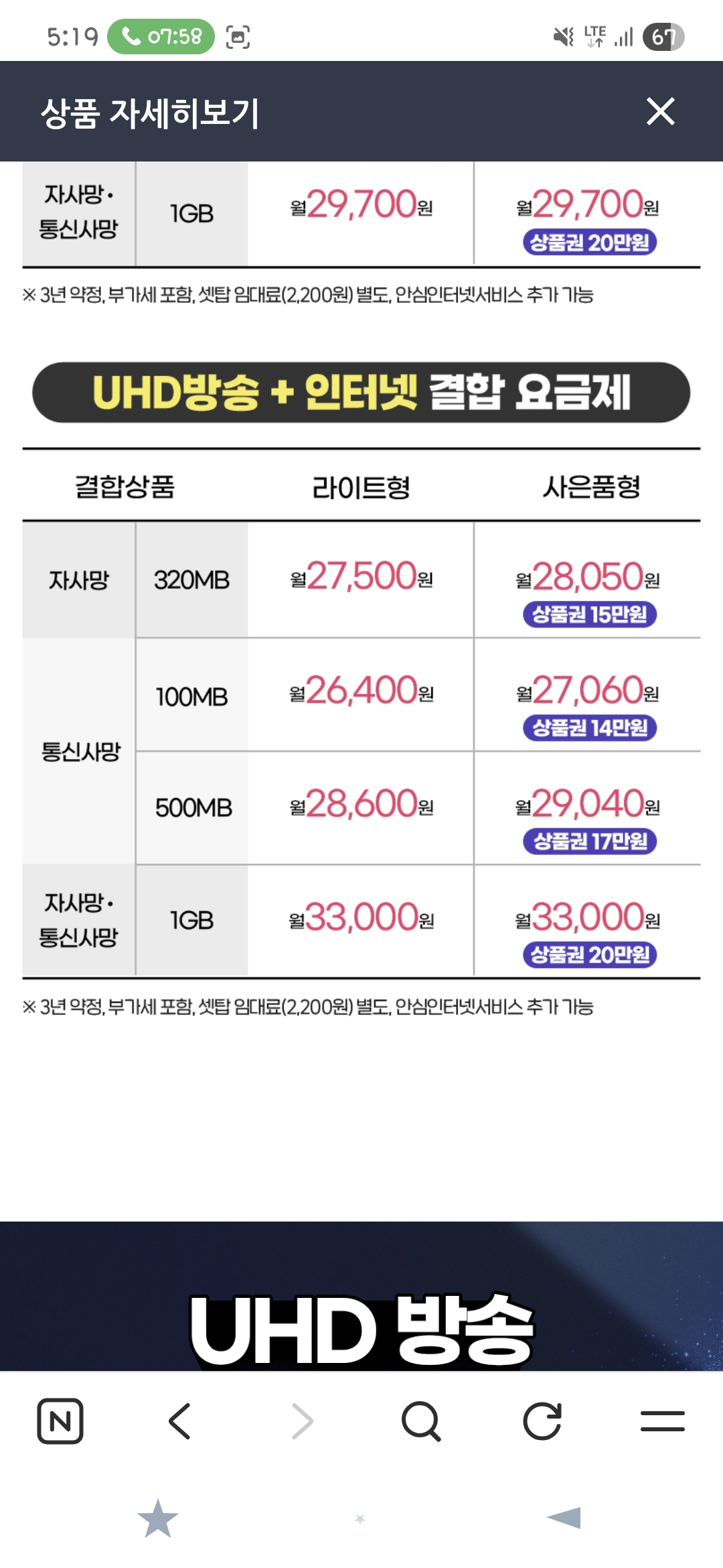 아쉽게도 LG인터넷과 결합할 수 없는 요금제입니다ㅠ
