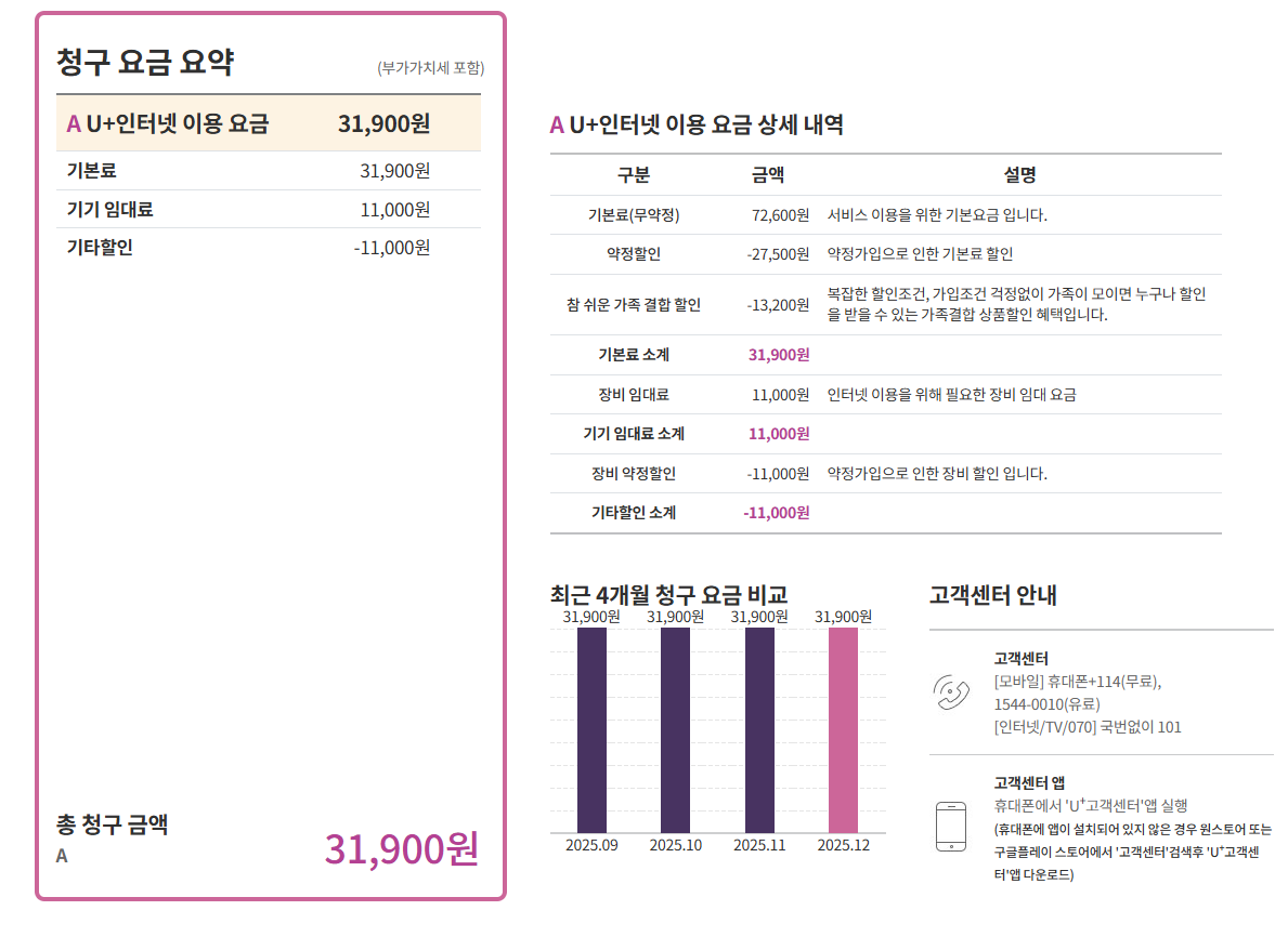 2) 현재 사용 중이신 이모님 댁 LG인터넷의 약정 기간은