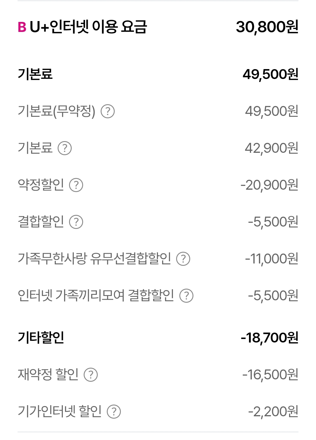 기존lg을 8년정도 이용하고 있고 10월3일 약정이 끝나 재약정을 하려고 114로 문의했습니다 핸드폰결합 5명. 33000원 할인 인터넷 할인11000원 받고 있습니다 인터넷+티비 한달