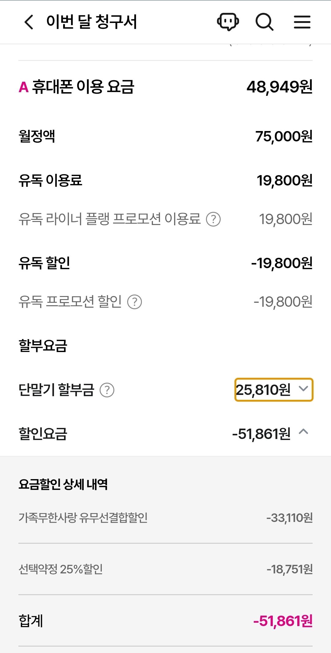 때보다 싸다고 말하네요 이동하게 되면 핸드폰 할인 이만큼 못받는다고 하네요