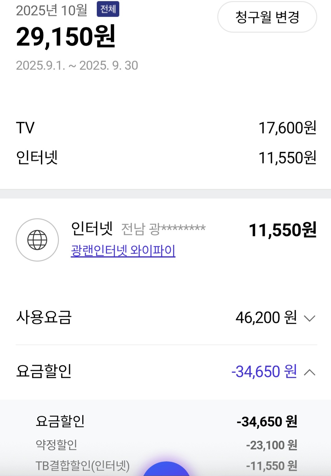 인터넷, TV 요금은 꽤나 많이 올라갑니다 ㅠ