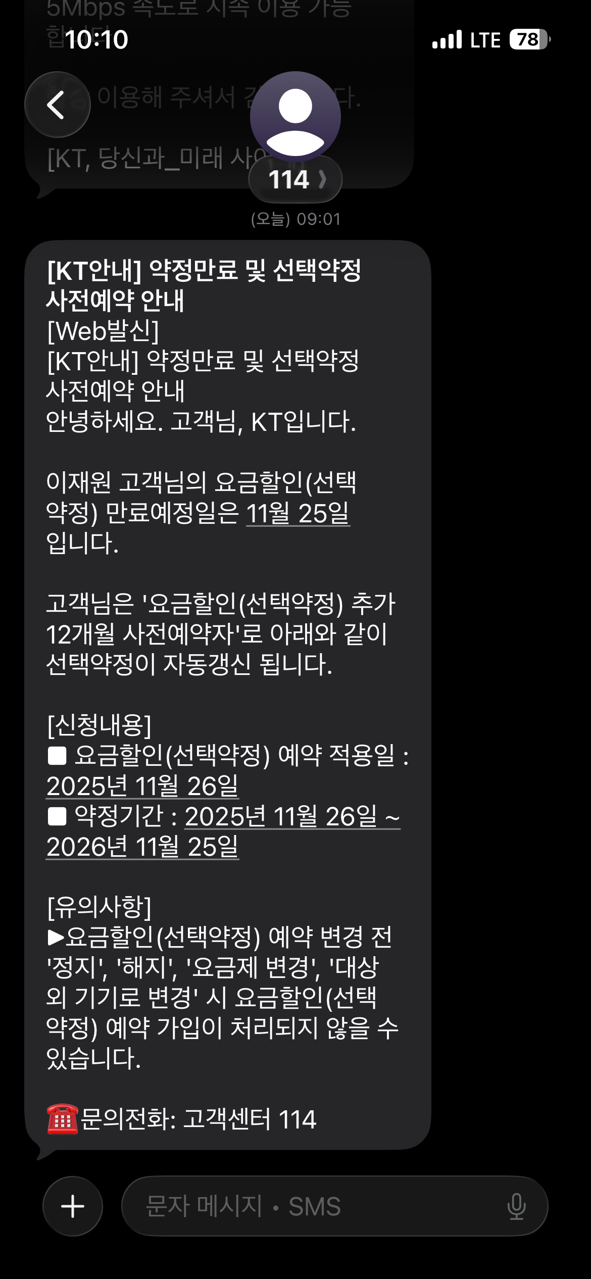 KT에서 갑자기 이런 문자가 와 혼란스럽습니다.