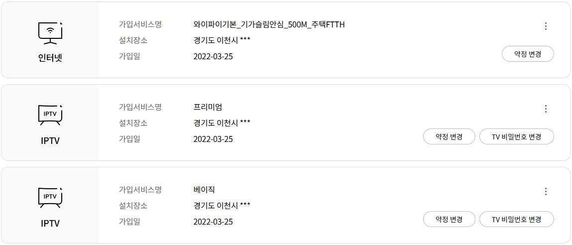 현재 사용하고 있는 LGU+ 상품은 다음과 같습니다.