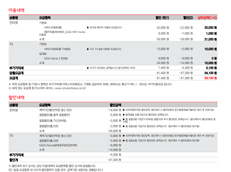 요금과(부가세 및 공유기 포함) 혜택을 여쭤보고 싶습니다