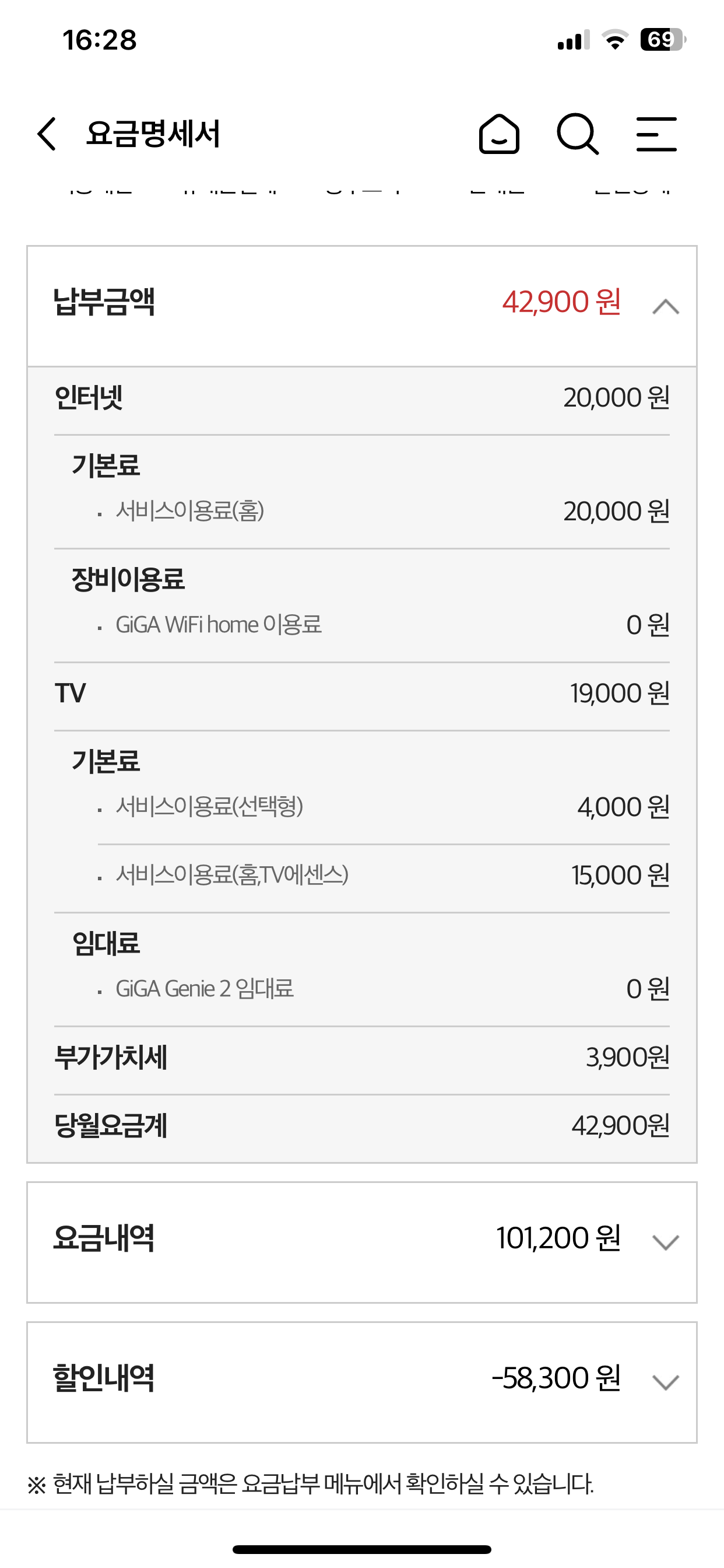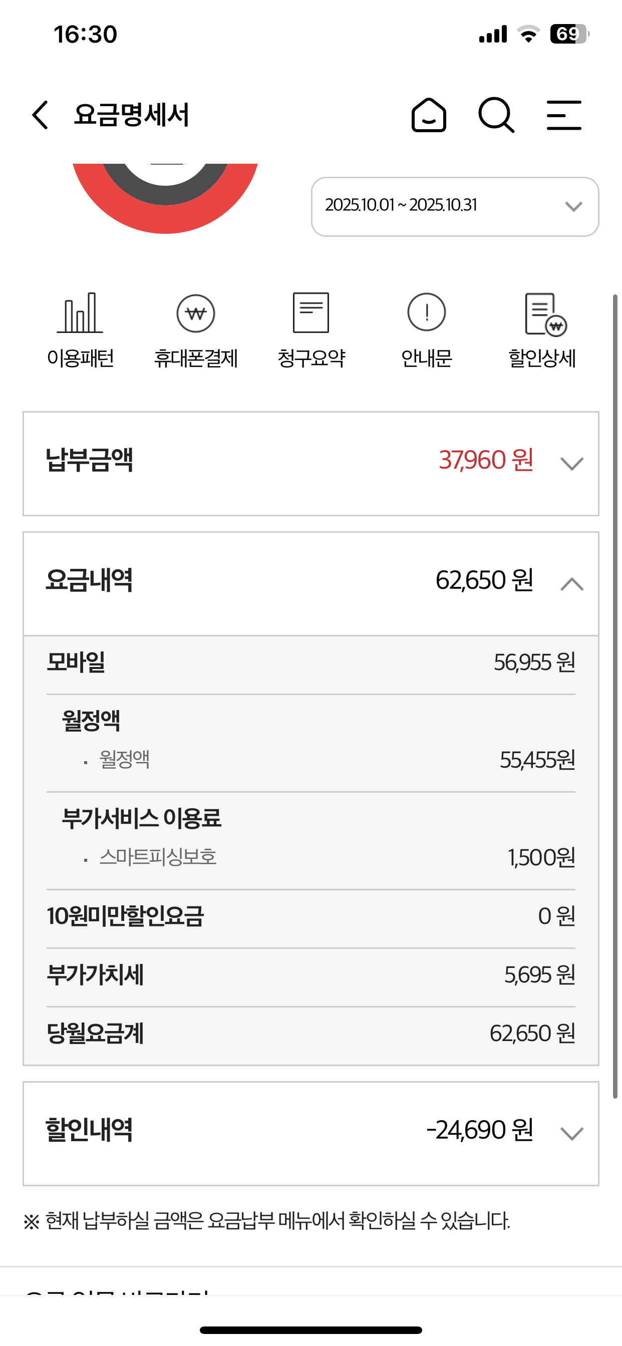 요금제는 5G 심플 30G, 인터넷500+tv2이용 중인데