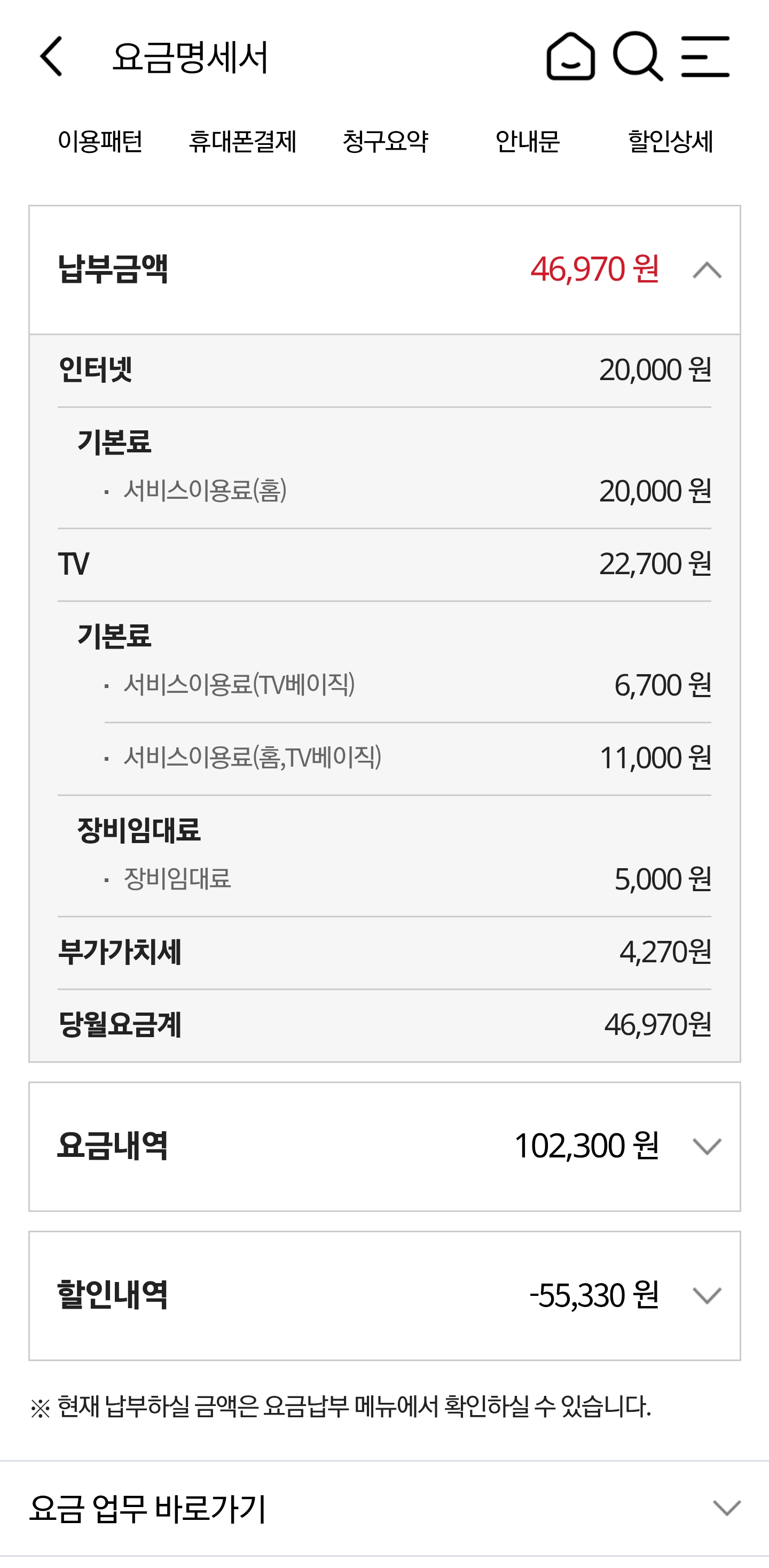 현재 고객님댁이 <패밀리> 할인을 받고 있는