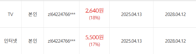 - 그리고 인터넷 약정은 전부 25년 3~4월에 계약해주신 듯 하고요 +_+