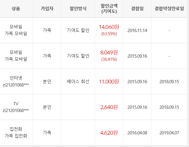 혹시나 세 장소 인터넷에서 '패밀리 결합'이라는 걸로 묶어 할인을 받고 계신 곳이 하나라도 있다면