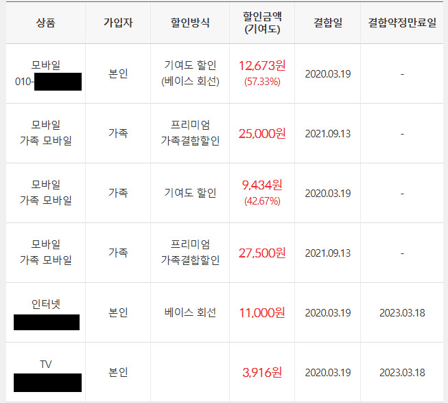 저는 지금 프리미엄 가족결합할인을 받고 있는 상태여서요