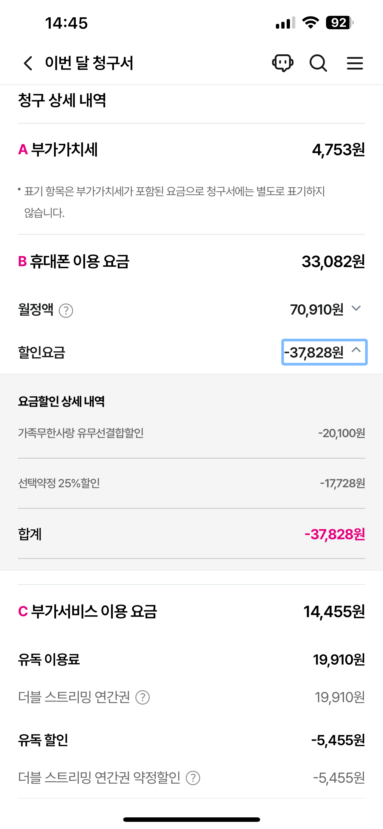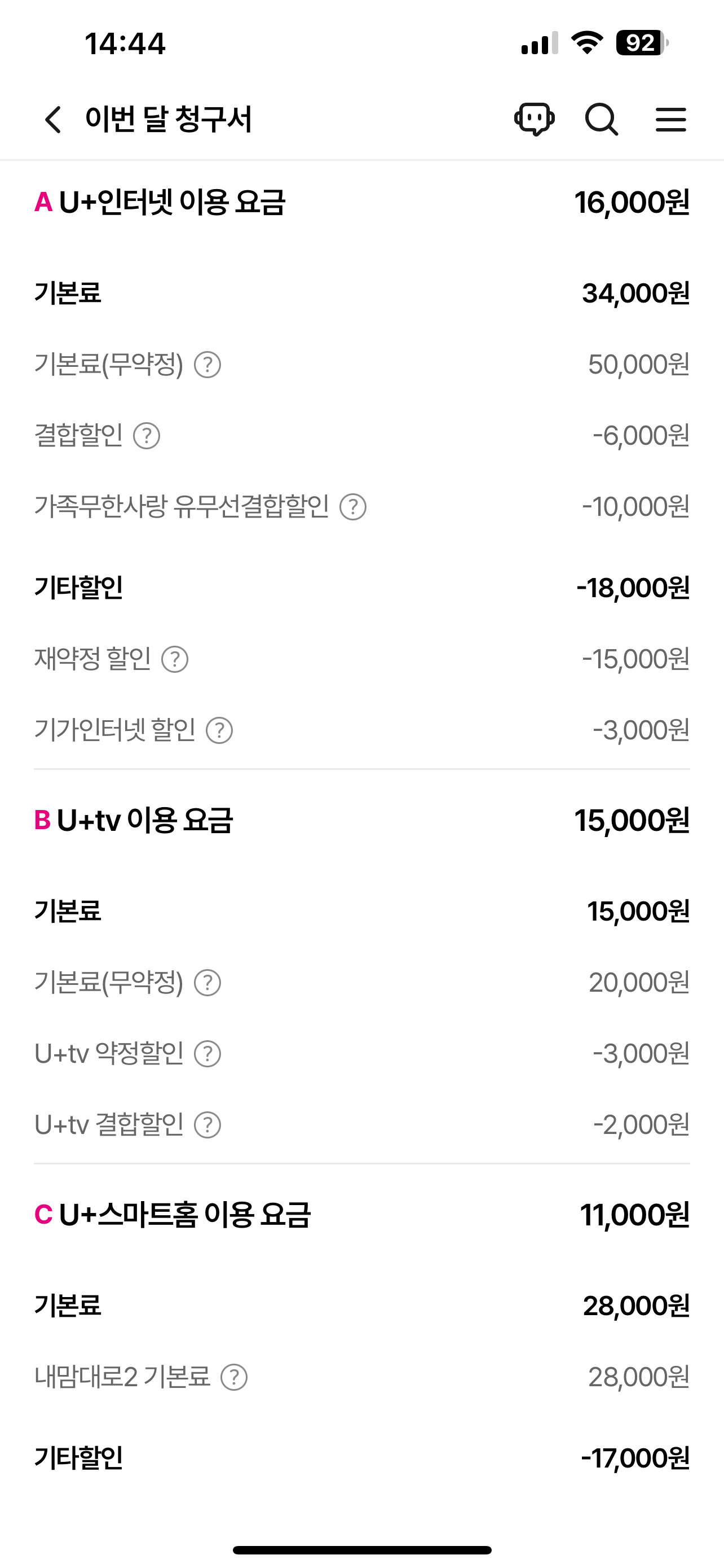 그리고 집에서 컴퓨터등 사용안해서 인터넷1기가도 낮추고싶다하니 재약정하고 1년뒤에 바꾸라고 하더라고요