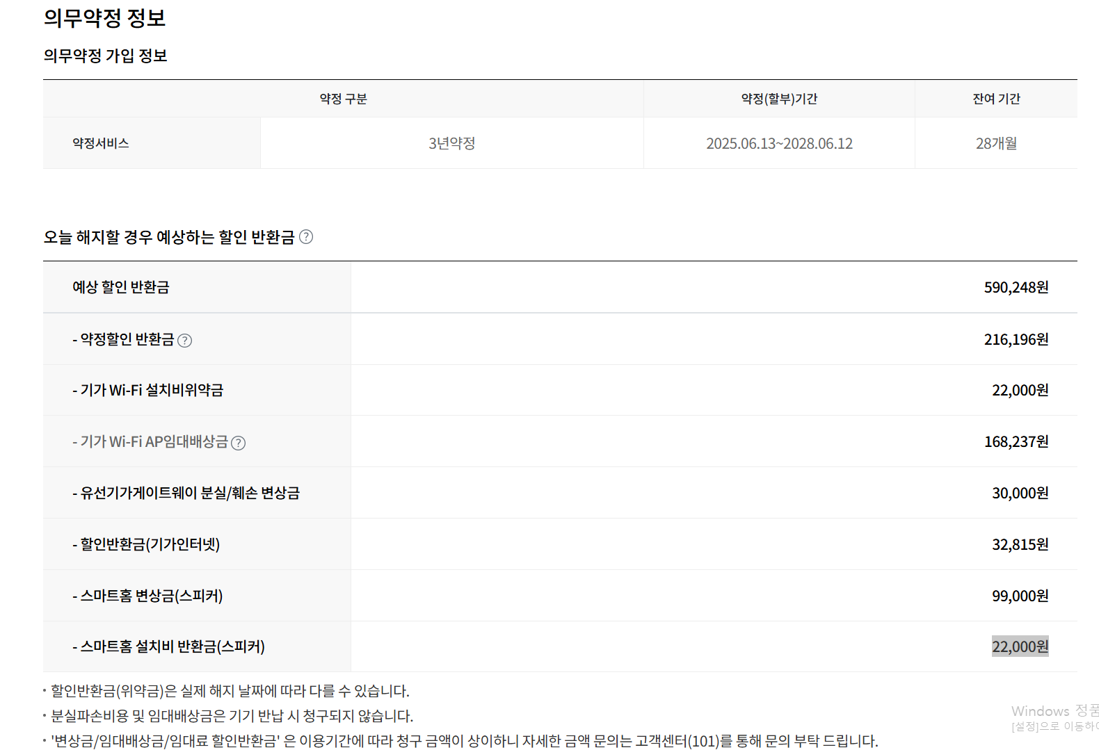실제로 확인해 보니 LG 약정은 3년으로 걸려있습니다.