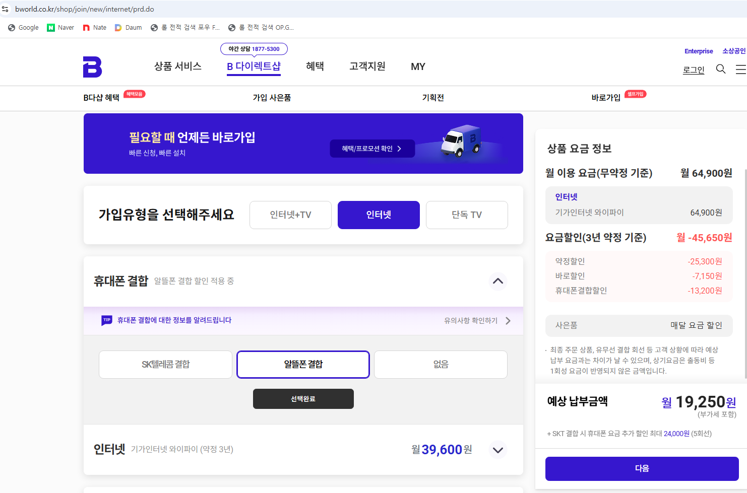 skb 인터넷 가입 문의 (알뜰폰 결합을 곁들인)