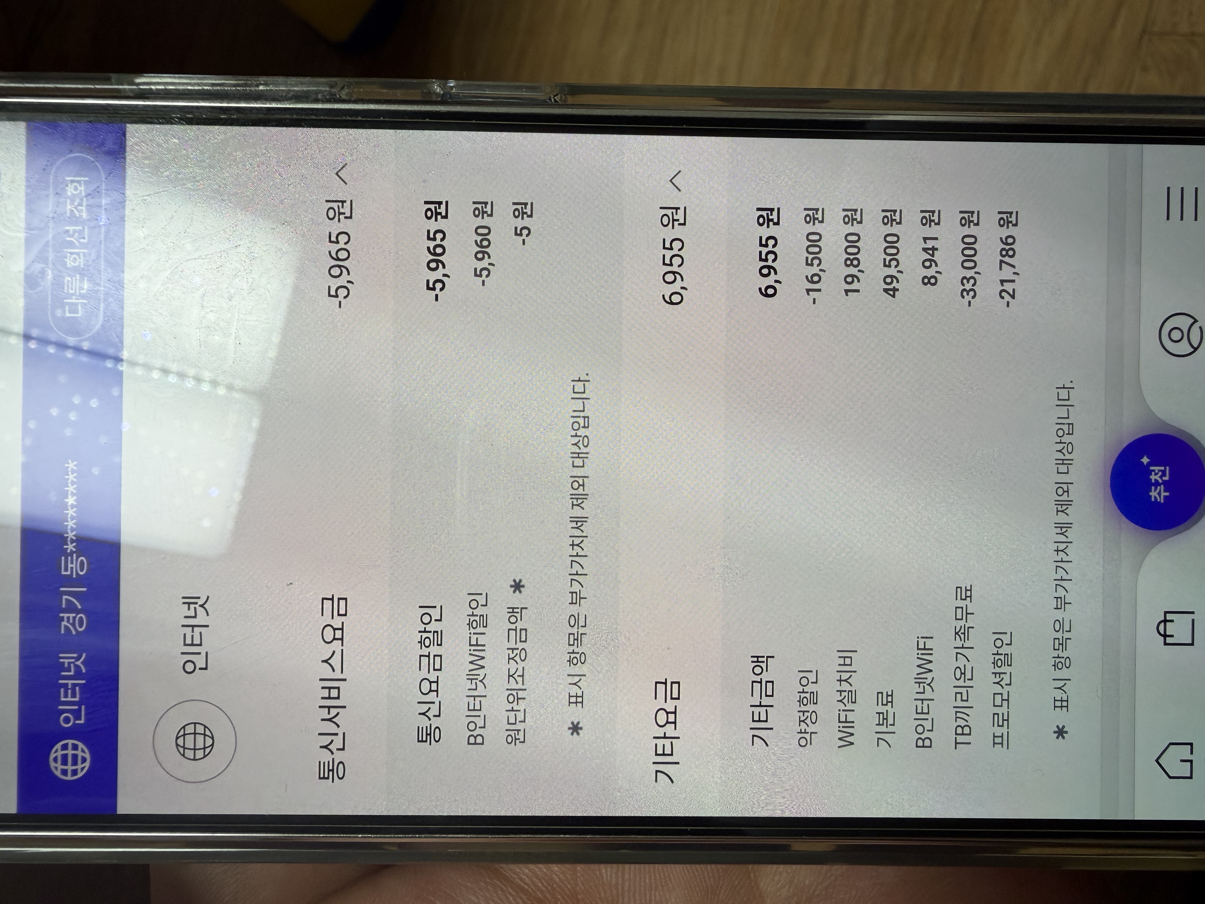 추가요금할인 되는거 있는지 알아봐주겠다고했고