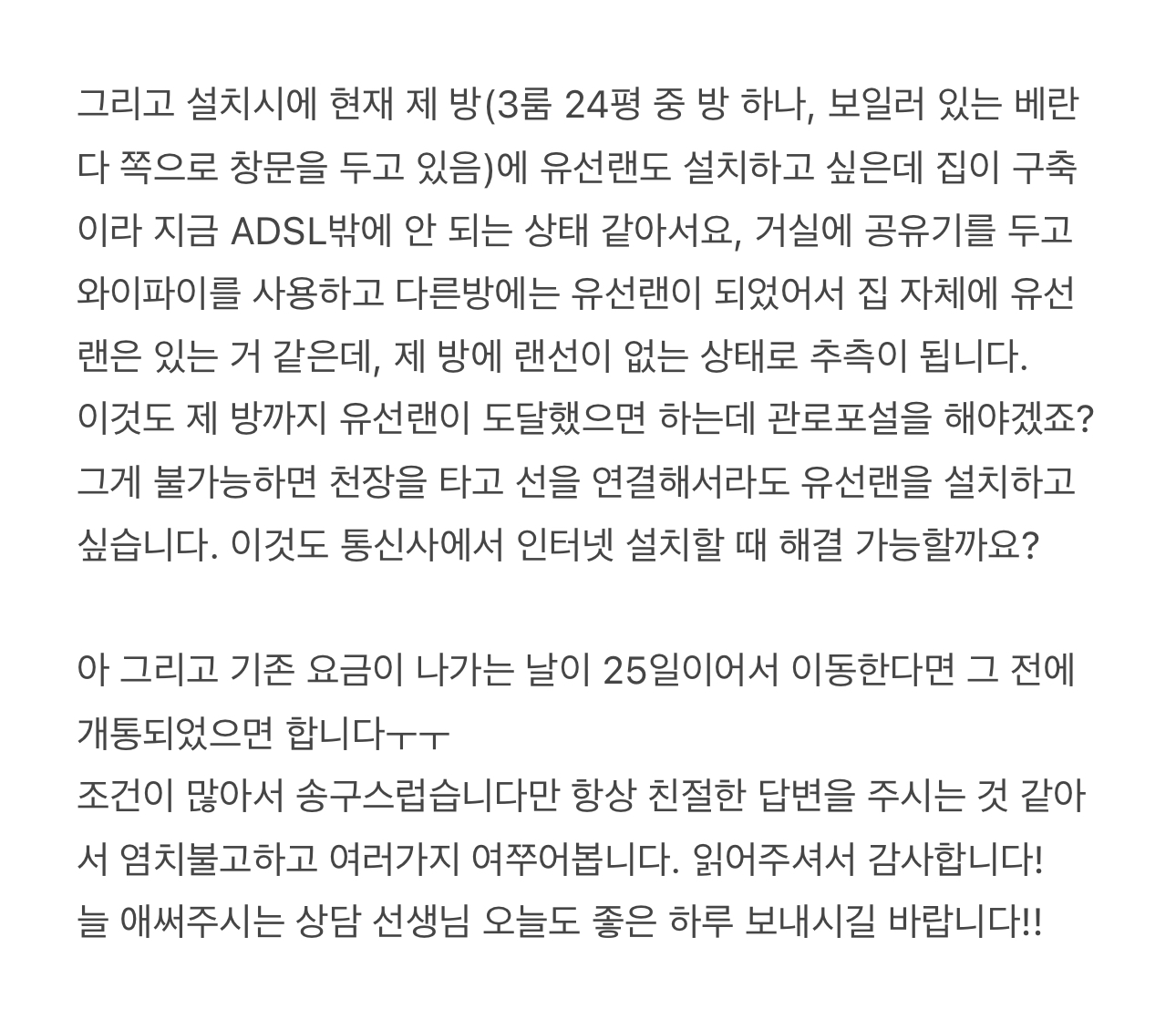 인터넷+TV 가입 관련 안내 요청