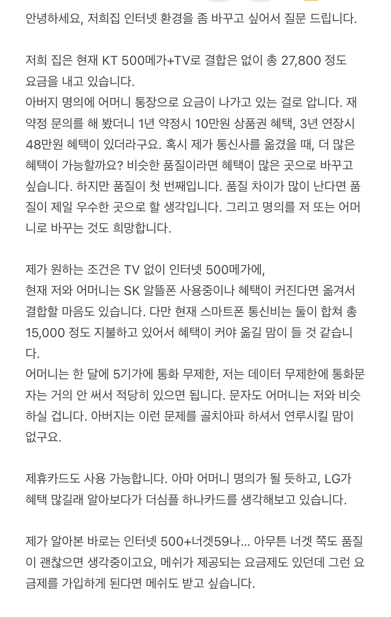 신축 아파트 인터넷 설치 문의, 이사 날짜에 맞춰서 사은품 혜택 제일 큰 통신사 추천해 주세요