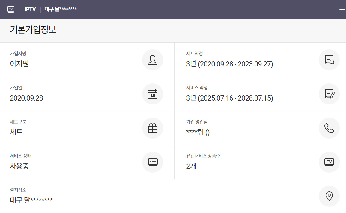 현재 가입된 정보 안내드립니다.