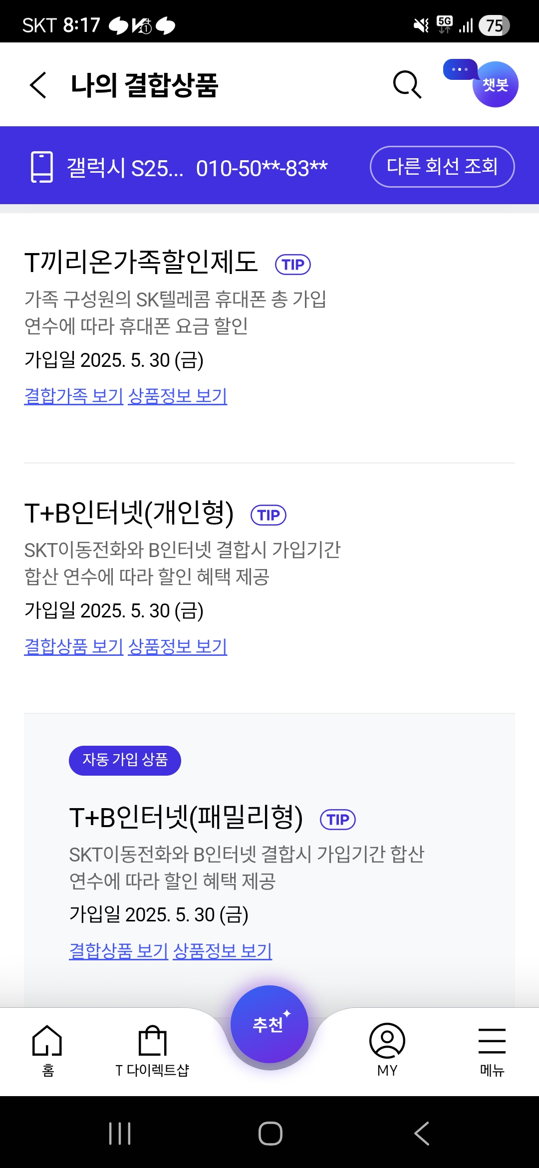 부모님 댁에 SK인터넷+TV 추가 설치(부모님 명의)하고 결합하려고하고 싶어서요